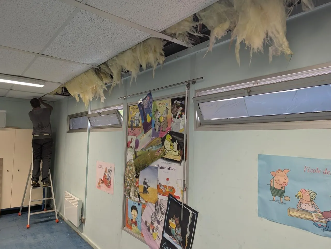 Mais vingt-quatre après les faits, les traces de la boue et de la pluie restent encore visibles à certains endroits. L’école communale en a fait les frais comme l’explique Yohann Disse, responsable service technique de la commune. « Samedi soir, en venant récupérer des documents administratifs, la directrice de l’école a découvert que les classes de l’école maternelle étaient inondées. On a constaté que les gouttières n’avaient pas suffi face à la quantité d’eau tombée et avaient débordé emportant les plafonds et l’isolation. »
