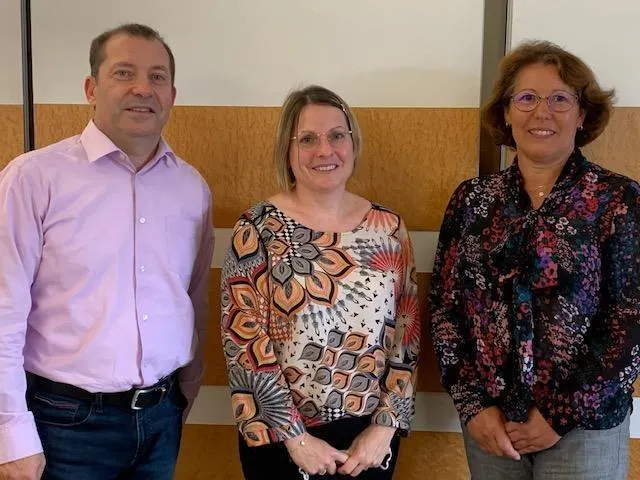 De g. à dr : Sébastien Gouhier maire d’Ecommoy, Coralie Leruez cheffe de projets « Petite ville de demain » (PVD) et Opération de revitalisation du territoire (ORT), Nathalie Dupont présidente de la CDC. © Le Maine Libre
