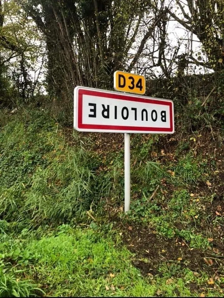 Un panneau retourné à Bouloire. JA 72