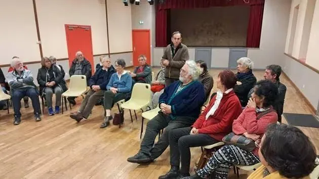 Des élus locaux et riverains s’étaient réunis le 25 février 2025 pour essayer d’organiser des actions d’opposition à l’implantation d’éoliennes supplémentaires. © Archives Ouest-France