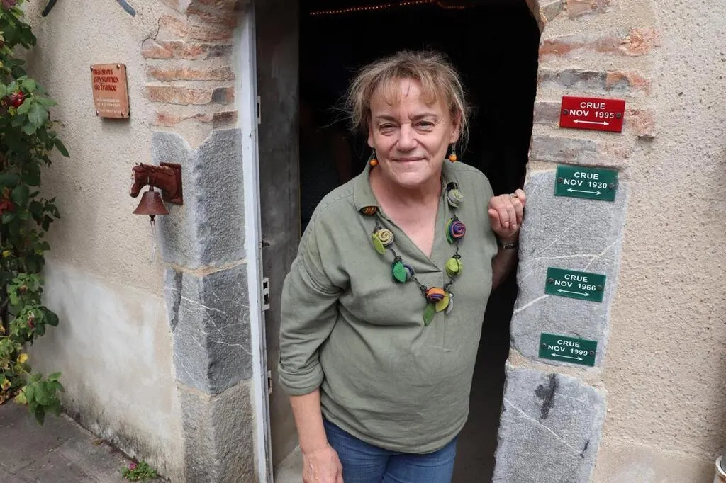 Isabelle Chiaramonti-Monnet, propriétaire du moulin du bourg à Parcé-sur-Sarthe et les niveaux atteints par les différentes crues. © Ouest-France