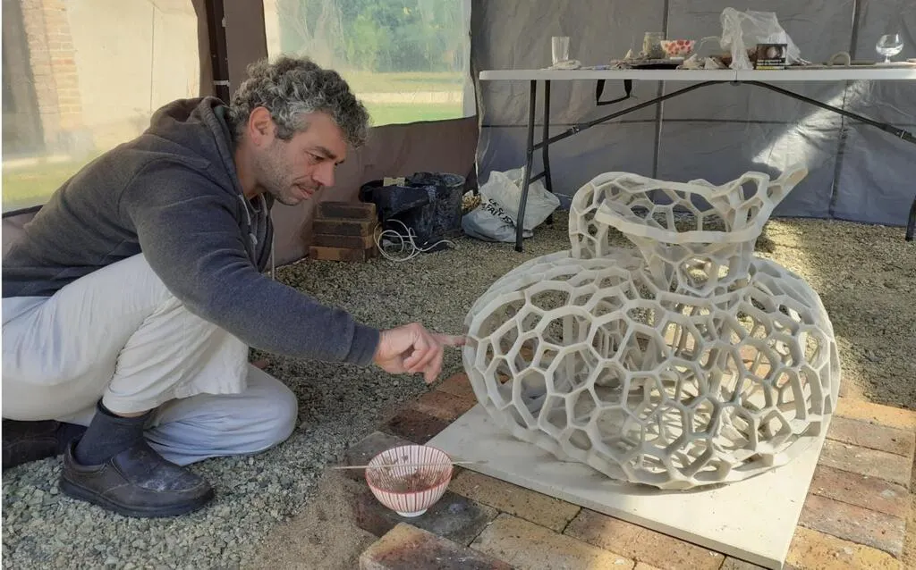 Le céramiste Mathieu Duval a façonné, entre jeudi et dimanche dernier, une pièce baptisée La quête du Pétrel (un oiseau légendaire de la mythologie inuit). L’artiste a réalisé ce maillage d’argile à la galerie Artistic Red Dot, devant le public. Il a fallu trois heures de cuisson dans un four posé sur l’œuvre, qui a atteint 1 000 ° avant que Mathieu Duval ne procède à l’émaillage et à une seconde cuisson.