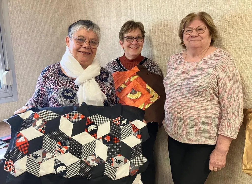 Nicole Guéranger (à gauche) et deux des adhérentes du jour. © Le Maine Libre