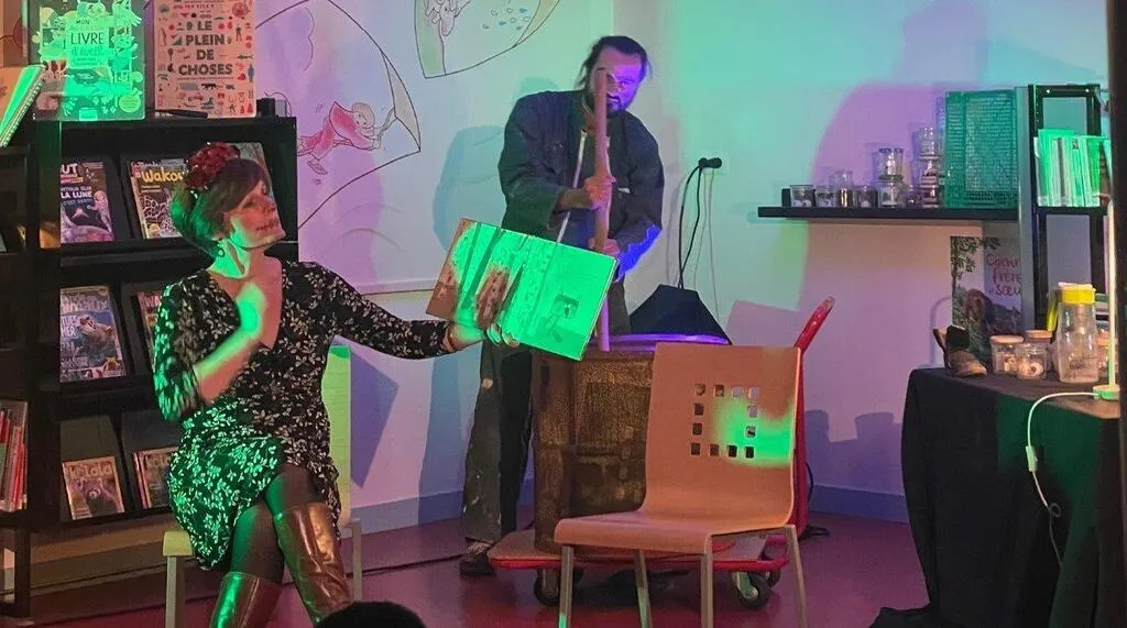 Cette année, la soirée était coanimée par Carine et  Nicolas, un lecteur qui s’est investi bénévolement dans la réalisation de ce chouette moment tellement apprécié des petits et des grands ».