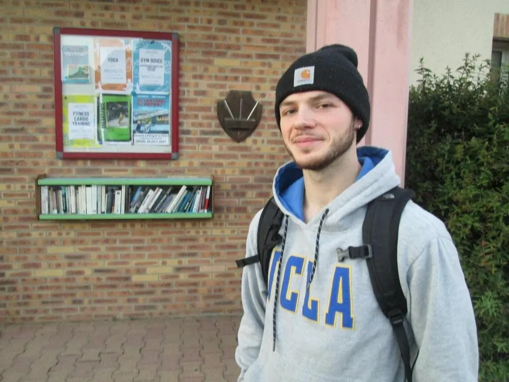 Étienne Chaubernard, 25 ans, a fait de sa passion du breakdance son métier. Ici à l’entrée de la salle polyvalente, où ont lieu les cours pour les enfants. © Ouest-France