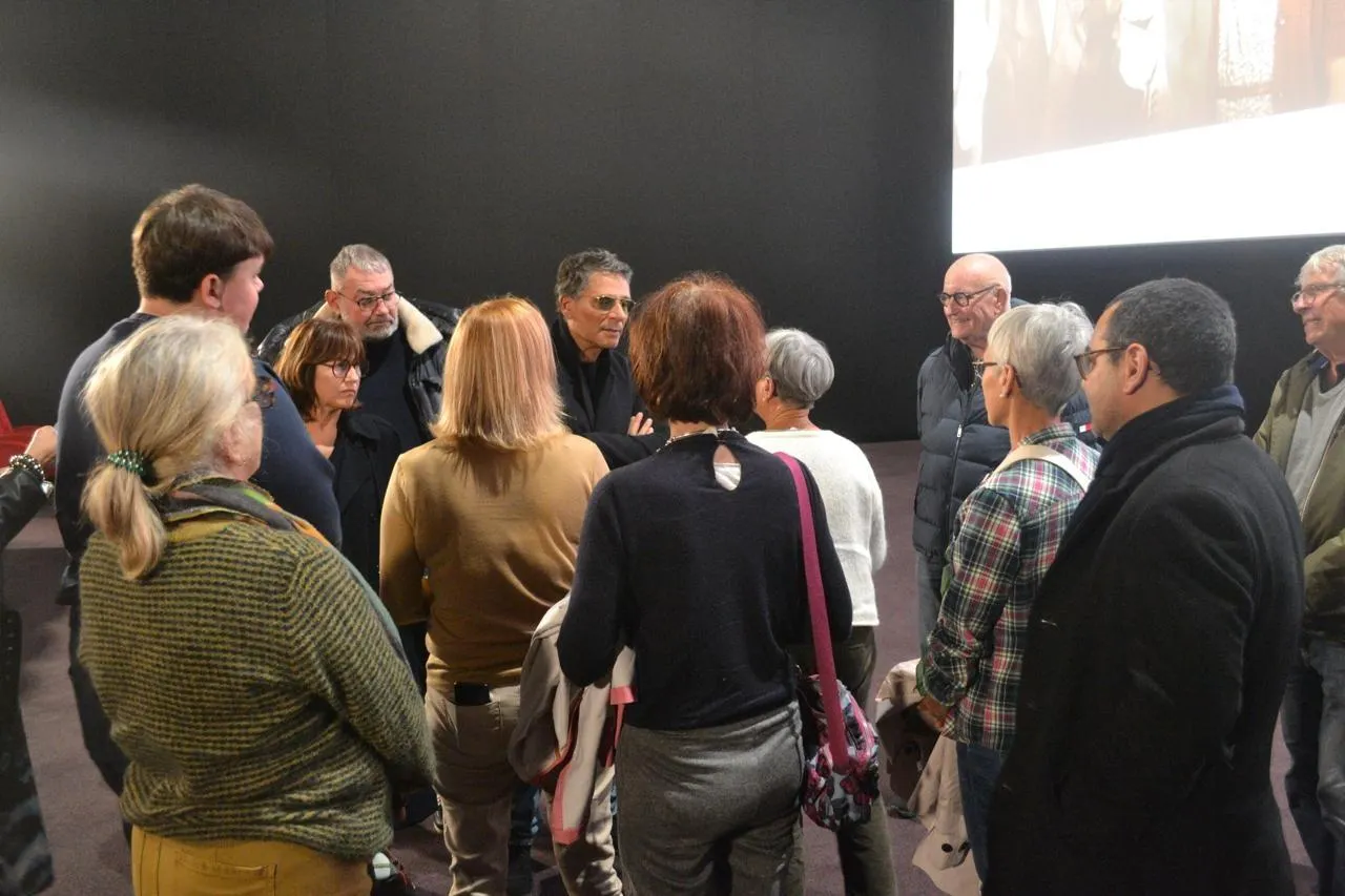 Pascal Elbé, ici au milieu de la photo, a été entouré par plusieurs spectateurs qui souhaitaient le féliciter et prendre une photo avec lui après le débat. © Ouest-France