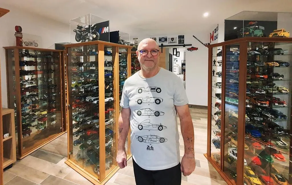 Près de Sablé-sur-Sarthe, Philippe, chauffeur routier à la retraite, s’est construit une collection impressionnante de 850 voitures miniatures au format 1/18e. Un univers qui occupe 22 vitrines et une pièce entière de sa maison.