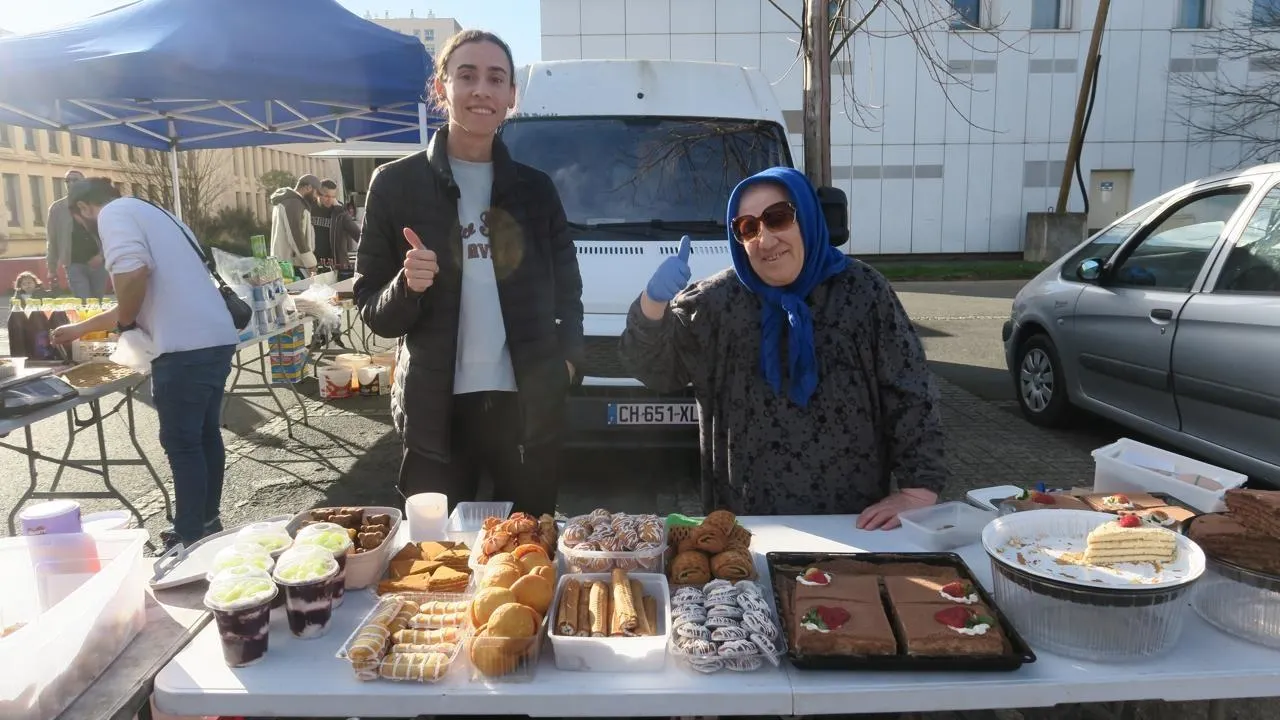 À quelques pas de chez Abdel, une vendeuse, Rosa, 71 ans, a installé un petit stand de pâtisseries tchétchènes. Elle est installée en France depuis 16 ans et fait le ramadan depuis toujours. Ce mardi 24 février 2026, elle est accompagnée d’Alisa, une jeune fille ukrainienne de 25 ans qui a fui son pays. Bien que je sois orthodoxe, je suis heureuse d’être sur le stand de Rosa, j’aime la culture musulmane