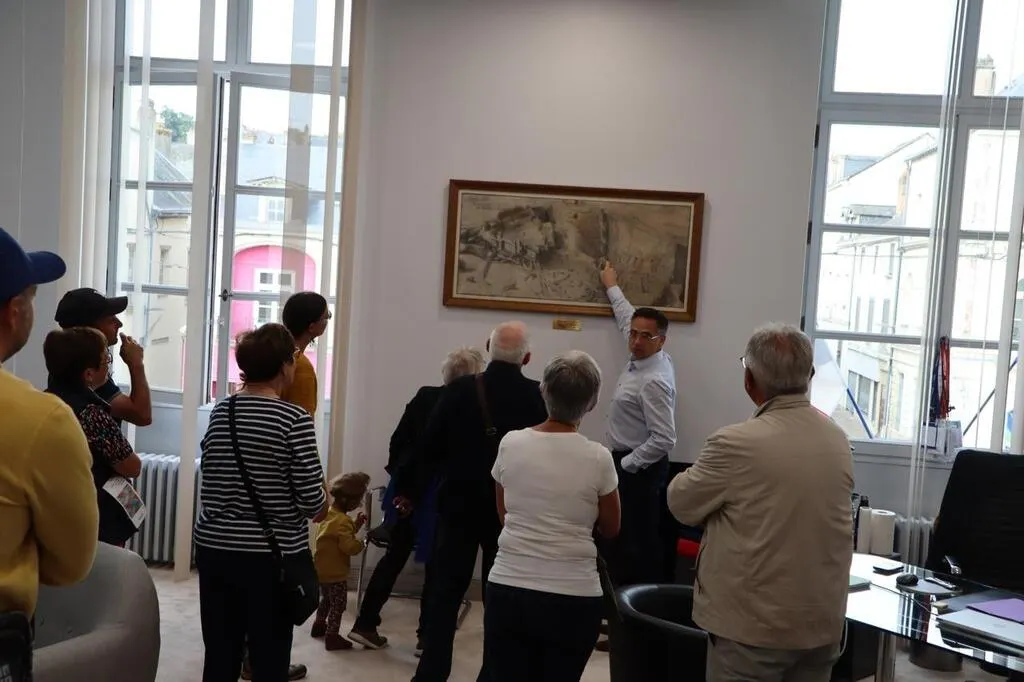 Dans son bureau, Nicolas Leudière, le maire, a accueilli les visiteurs inscrits à la visite de la mairie dans le cadre de la 41e édition des Journées européennes du patrimoine. © Ouest-France
