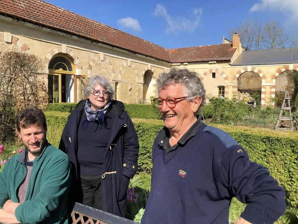 De gauche à droite, Julien Hardy, historien et médiateur culturel à l’abbaye de Tuffé (Sarthe) ; Évelyne Wander, présidente de l’association des Amis du patrimoine de l’abbaye, et Jean-Pierre Maupay, fondateur de l’association et ancien maire du village. © Ouest-France