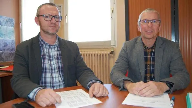 Christophe Libert, maire de La Fontaine-Saint-Martin (à gauche), et Jean-Claude Boiziau, maire d’Oizé. © Ouest-France