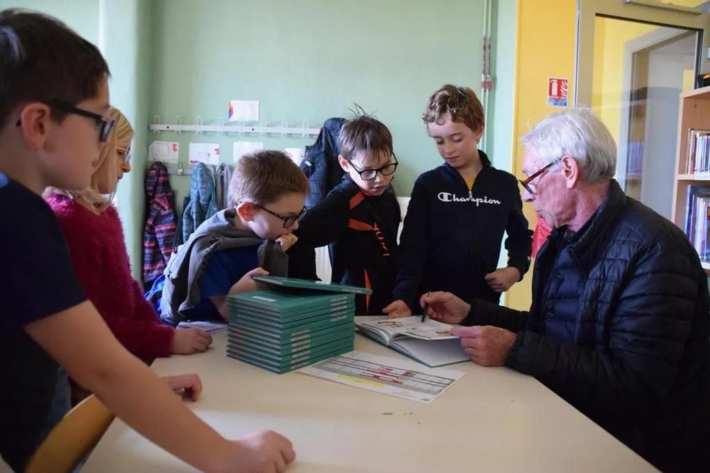 Philippe Ramage a dédicacé son livre portant sur les accidents domestiques aux élèves de Mareil-sur-Loir, vendredi 25 novembre 2022. © Communauté de communes du Pays fléchois