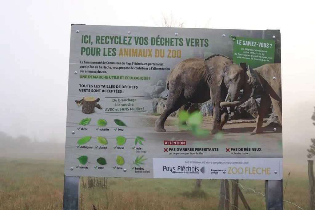 Depuis mai 2021, le zoo de La Flèche récupère une partie des déchets verts déposés par les habitants dans la déchèterie de Thorée-les-Pins. Ils servent à nourrir les animaux, notamment l’éléphant Boten.
