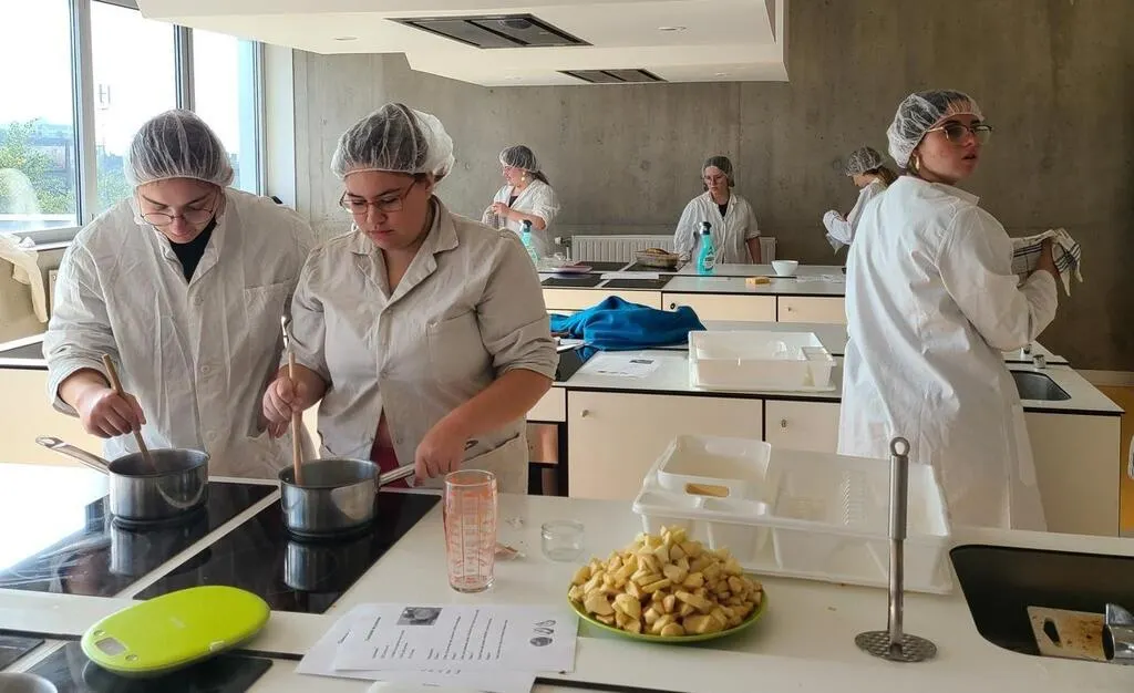 Préparation de la compote et du cake dans la cuisine pédagogique par les classes de CAPA 2 vente pour clore deux journées autour de la santé et du bien-être. © Le Maine Libre