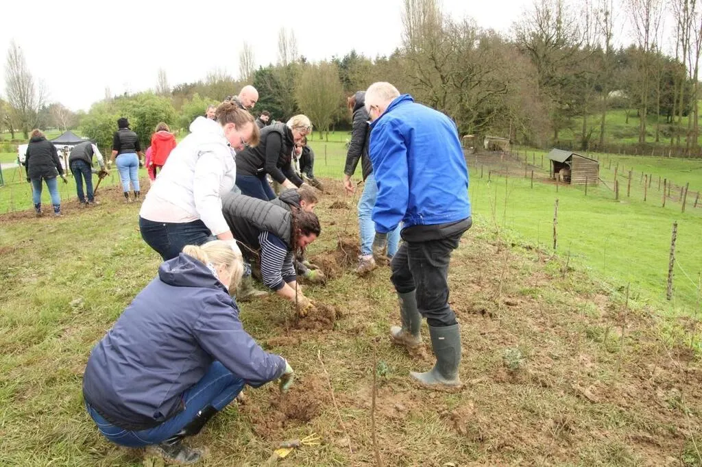 Les salariés de l’entreprise Marie ont planté 800 arbres au parc animalier d’Auvers-le-Hamon, avec l’aide de l’association Bossy-Cévert. © Le Maine Libre