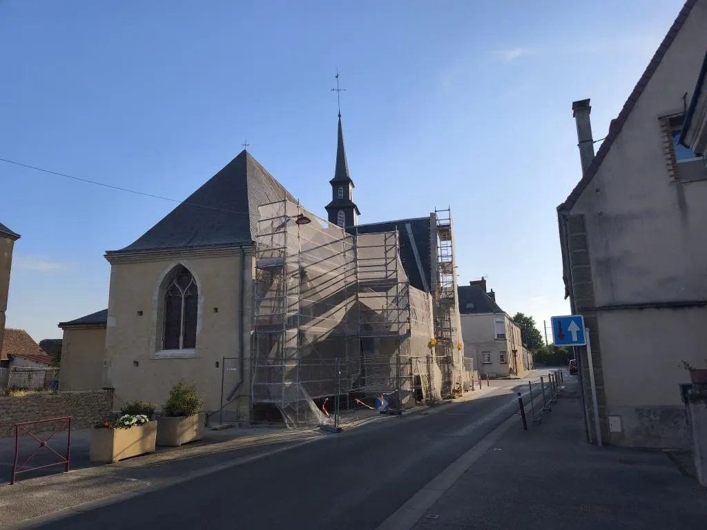 L’église du XVe siècle en travaux. © Le Maine Libre