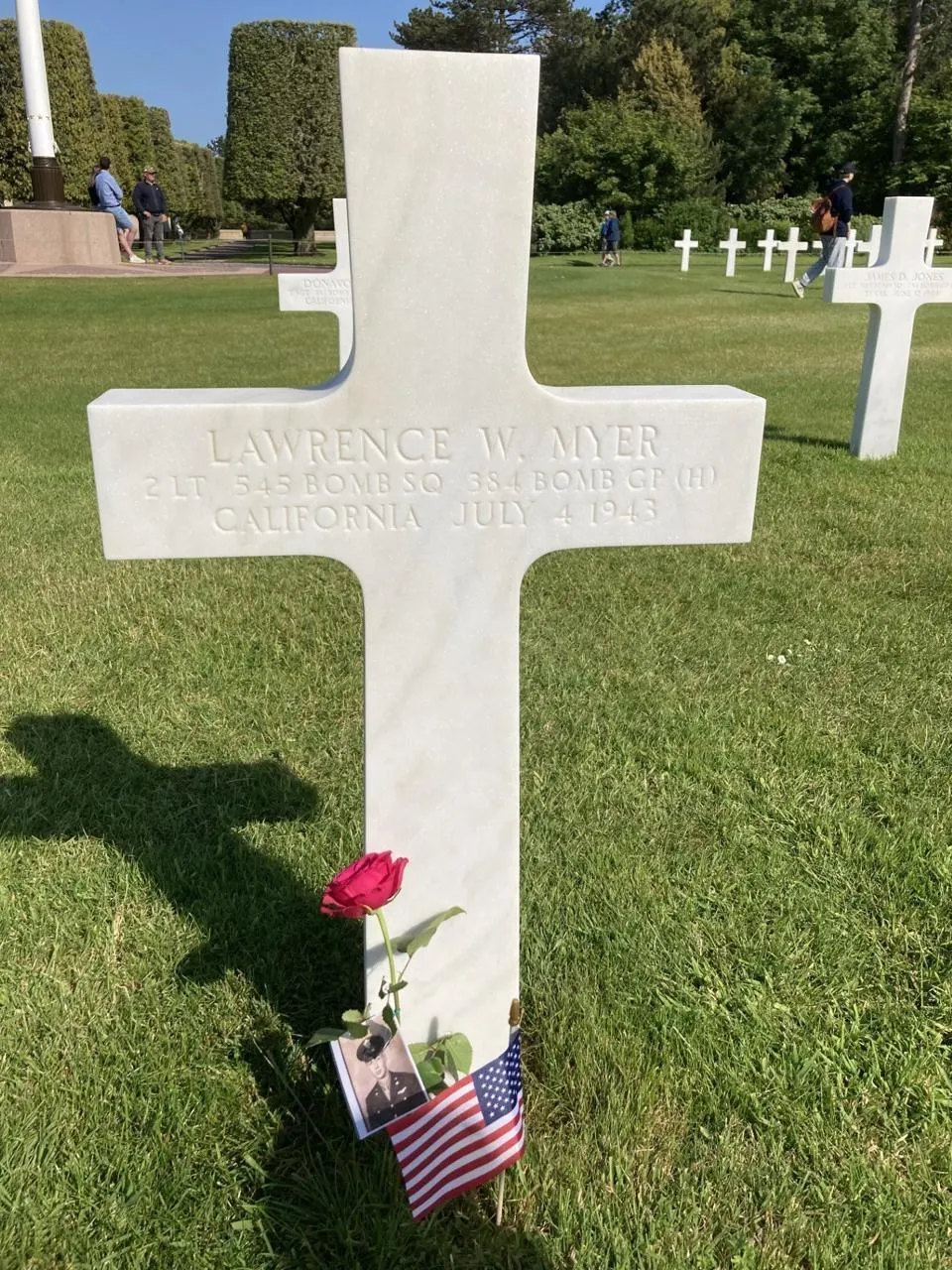 Fidèle à sa démarche entreprise il y a 20 ans, Jacky Emery a rendu hommage à plusieurs soldats américains tombés à Poillé-sur-Vègre, en 1943. Le 6 juin 2023, il s’est rendu au cimetière américain d’Omaha Beach où il a fleuri les tombes des aviateurs américains tués dans la commune le 4 juillet 1943.