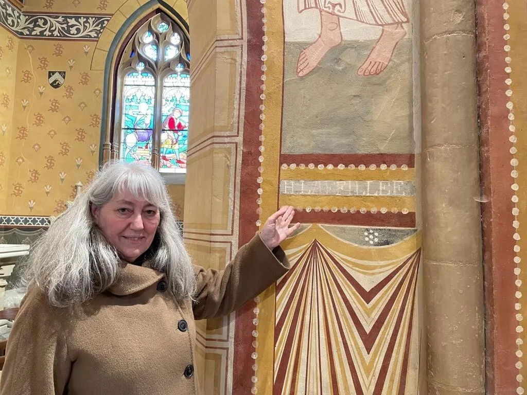 Véronique Legoux a présenté les travaux de restauration des fresques qu’elle a dirigés dans l’église Saint-Julien de Poncé. © Le Maine Libre