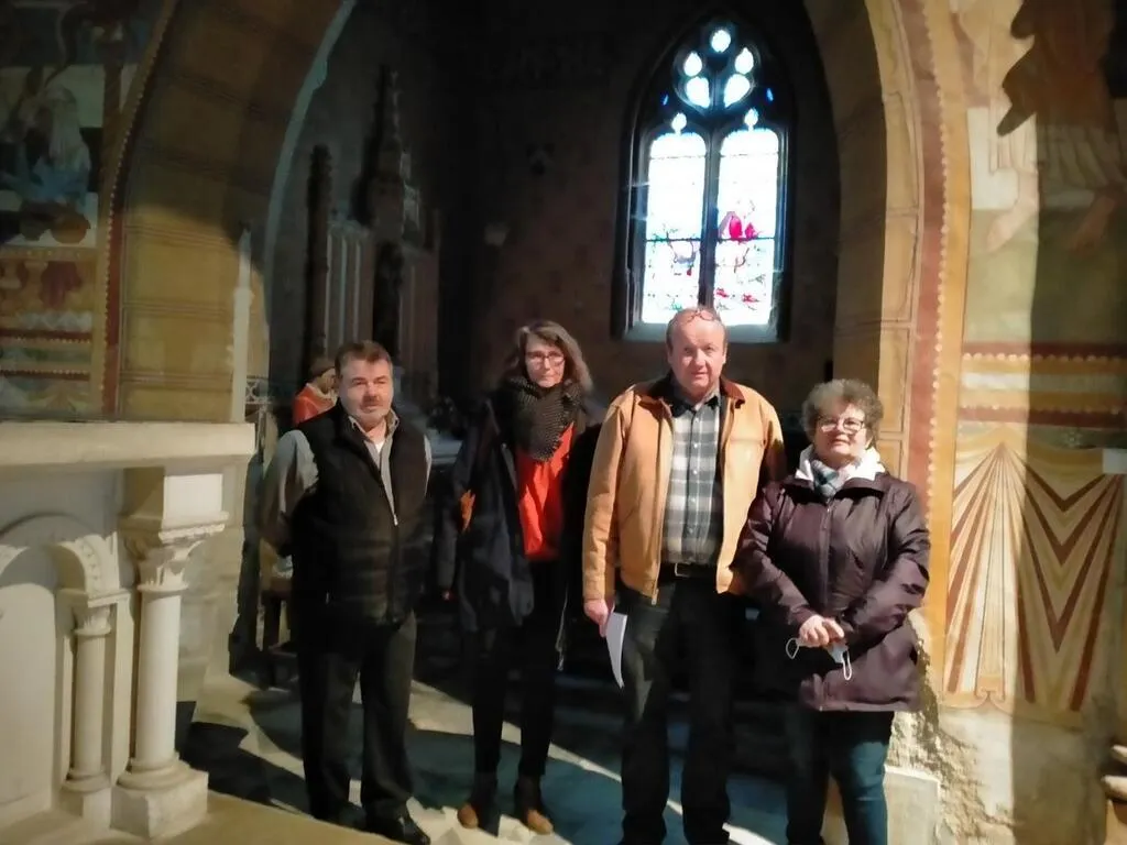Réunion de chantier avec Pierre Facquer, adjoint ; Galiène Cohu, maire de Loir-en-Vallée ; Patrick Settier, adjoint et chargé des bâtiments publics et Martine Crinière, maire déléguée qui espère que la prochaine messe de Noël pourra se tenir dans l’église Saint-Julien. © Ouest-France