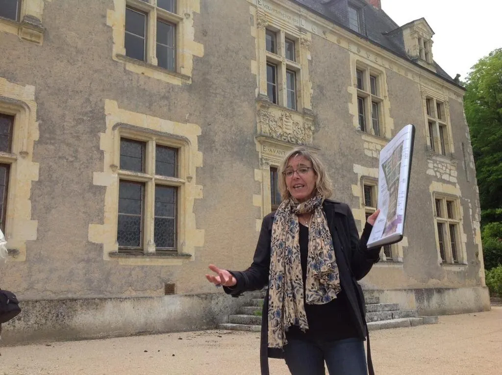 La Chartraine Valérie Martel guide les visiteurs (ici devant la façade nord) © Le Maine Libre