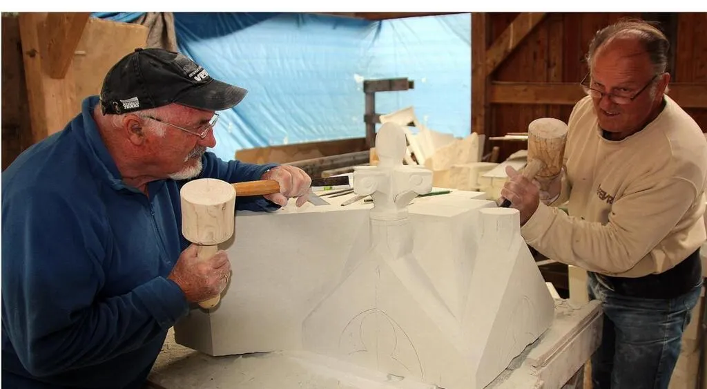 Certains sont menuisiers, débroussailleurs, planteurs d’arbres et d’autres sont tailleurs de pierre. Comme Francis Gouet, ancien directeur de l’entreprise Lefèvre, qui restaure le pilier sud-ouest de l’édifice. « Il faut reprendre une très longue fissure apparue dans le transept. Nous remplaçons les pierres. Nous avons choisi du tuffeau poitevin. Outre le confortement du pilier on restitue toute l’architecture d’une niche votive située au sommet » explique-t-il.