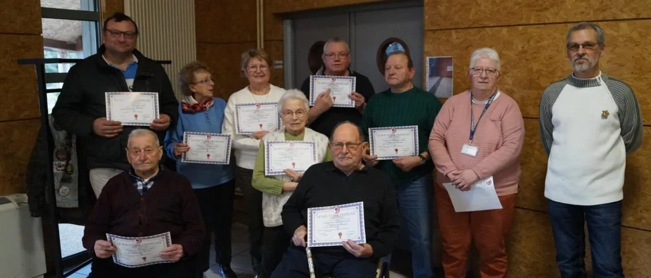 Lors de l’assemblée générale du Souvenir français, Didier Guillot, Mareme Parisot, Marylène Piron, Crole Legros, Vincent Legros, Cédric Germain, Maud Arnoult, Muguette Froger, Auguste Chenon, Claudine Bethmont, Jacky Maheu, Raymond Lehoux et Roger Panchevre, ont reçu un diplôme. © Ouest-France
