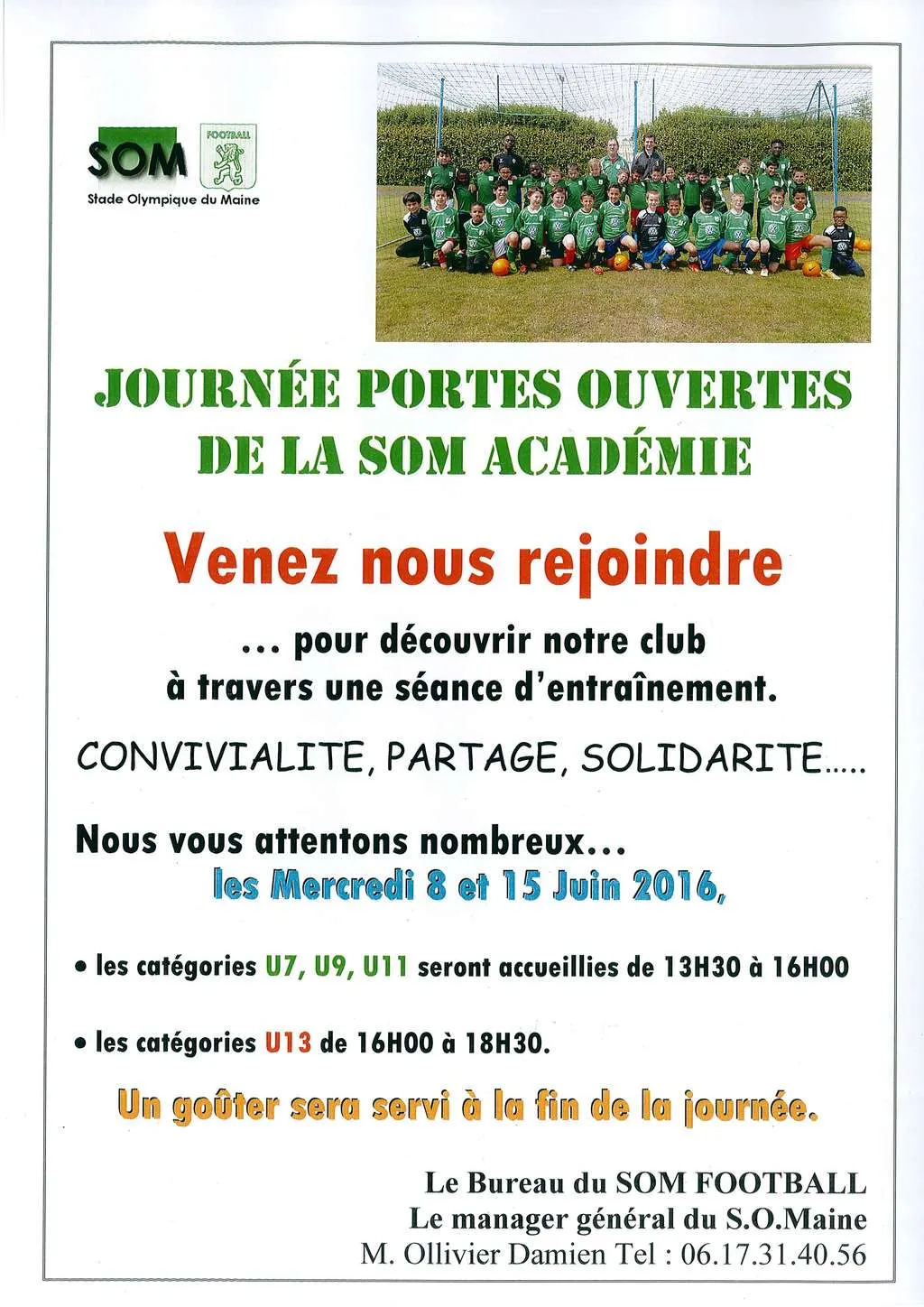 La section SOM FOOTBALL organise deux journées PORTES OUVERTES au Parc de la Californie (201 Rue H. CHAMPION / 72100 LE MANS) les Mercredi 08 et 15 juin 2016.