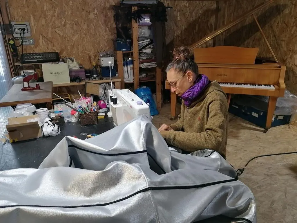 Isabelle Cany en train de coudre l’un des costumes pour le prochain spectacle de la Citadelle des Anges, à Teloché (Sarthe). © Ouest-France