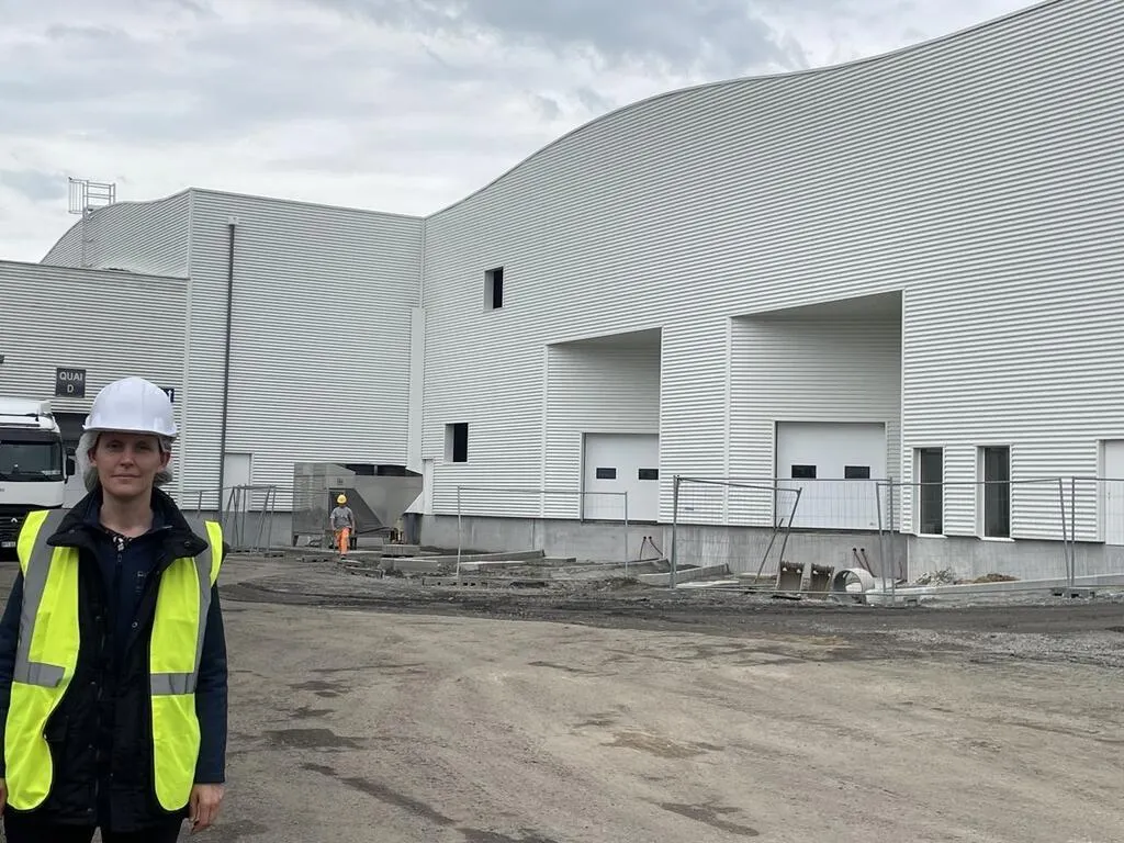 Sylvaine Duret, directrice technique, devant la seconde extension (le bâtiment le plus haut), qui sera achevée en septembre. © Le Maine Libre