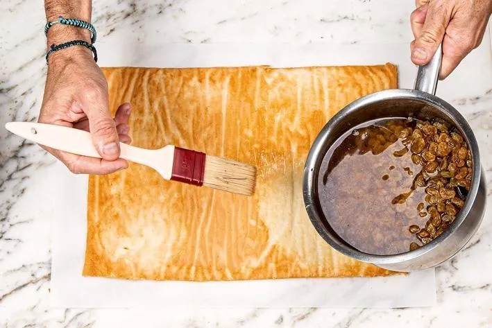 Déposer la crème puis les raisins gonflés de sirop de rhum. Olivier MARIE / Bretons en Cuisine