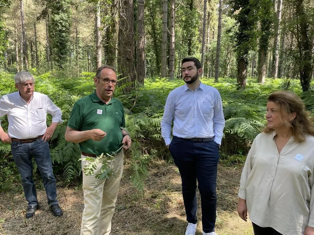 Antoine d’Amécourt et la fédération Fransylva ont fait visiter la forêt de Pescheseul au think-tank Écologie Responsable, vendredi 19 juillet 2024. © Le Maine Libre