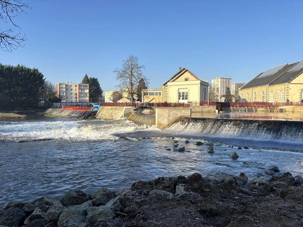 Vieux de cent ans, le barrage de l’Épau, près de la maison de l’eau au Mans (Sarthe), est en train d’être rénové. L’objectif est surtout de mieux réguler la rivière en cas de crue mais aussi d’installer une passe à poissons, inexistante jusque-là .