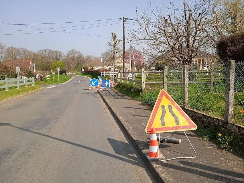 En début de semaine, la pose de panneaux de signalisation provisoire a surpris les automobilistes à la sortie du bourg. Le service des eaux a dû procéder à une inspection technique après un accident récent.