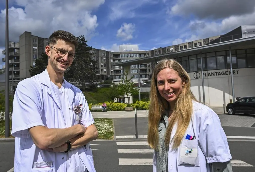 Doriane Letellier, ici avec Landry Petiteau, estime que la loi portée par le député mayennais Guillaume Garrot est électoraliste. Les deux internes souhaitent que les étudiants en médecine soient associés aux discussions. © Photo Le Maine Libre – Denis LAMBERT