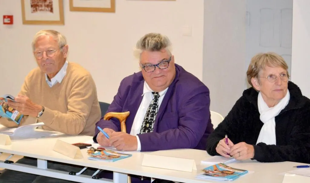 De g. à dr : Arnaud de Panafieu de la commission finances, Didier Desbrosses, metteur en scène du son et lumière, et Nicole Pipelier en charge de l’animation. © Le Maine Libre