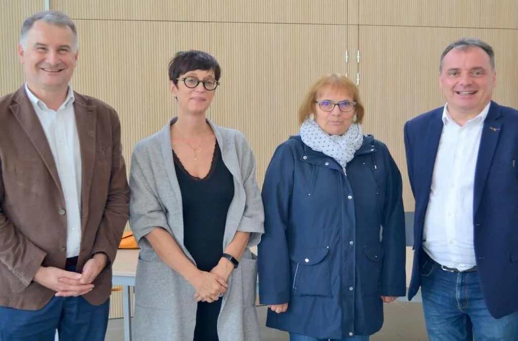 Nouveau président de l’association, Sébastien Guerts (à droite) a été accueilli par Édouard Petit, Armelle Grenet et Marie-Claude Talineau. © Le Maine Libre