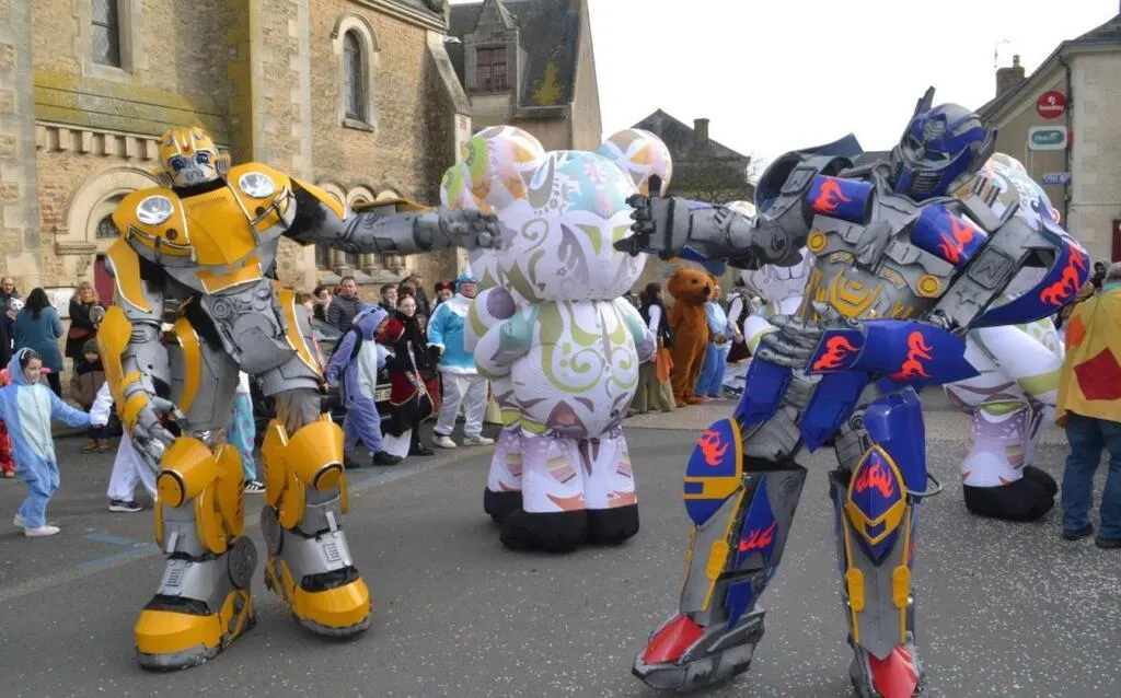 Grandes nouveautés du Carnaval de Précigné, robots et oursons géants ont fait le show place Saint-Pierre. © Le Maine Libre