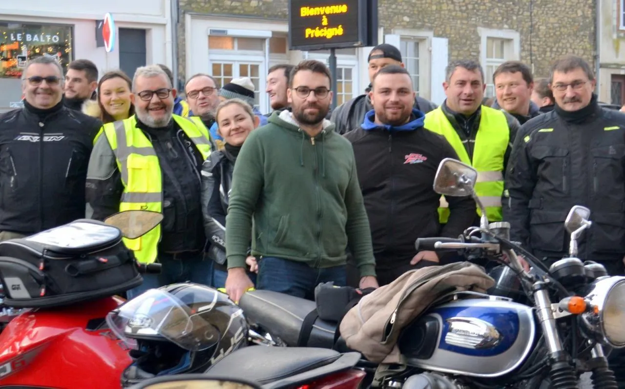Les motards de Précigné ont répondu à l’appel de Jérémy Huet (au centre) pour participer au Téléthon. © Le Maine Libre