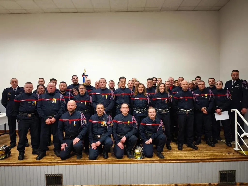 photo  les 50 sapeurs-pompiers de l’unité territoriale teloché – saint-mars-d’outillé ont déjà effectué 585 interventions en 2024. samedi 30 novembre, ils ont célébré la traditionnelle sainte-barbe.  ©  pompiers 1