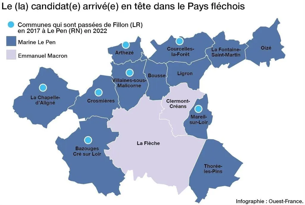 Présidentielle 2022. Marine Le Pen rafle la mise dans 12 des 14 communes du Pays fléchois... |