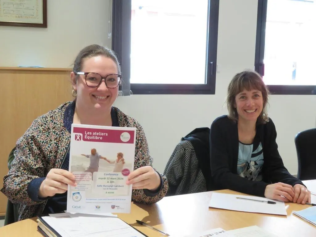 Marie Guislain, kiné de l’association Kiné Ouest prévention (à g.), et Émilie Vincent, référente familles du centre social de l’Antonnière. © Le Maine Libre