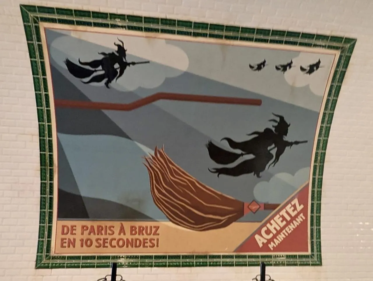 « De Bruz à Paris en 10 secondes sur un balai ! » C’est une grande affiche qui l’annonce dans le métro. Ni à Paris, ni à Rennes, mais à Orlando, dans l’État de Floride, aux États-Unis. Il s’agit d’un élément de décoration du parc d’attractions Universal Epic Universe, qui a ouvert en mai 2025 outre-Atlantique.