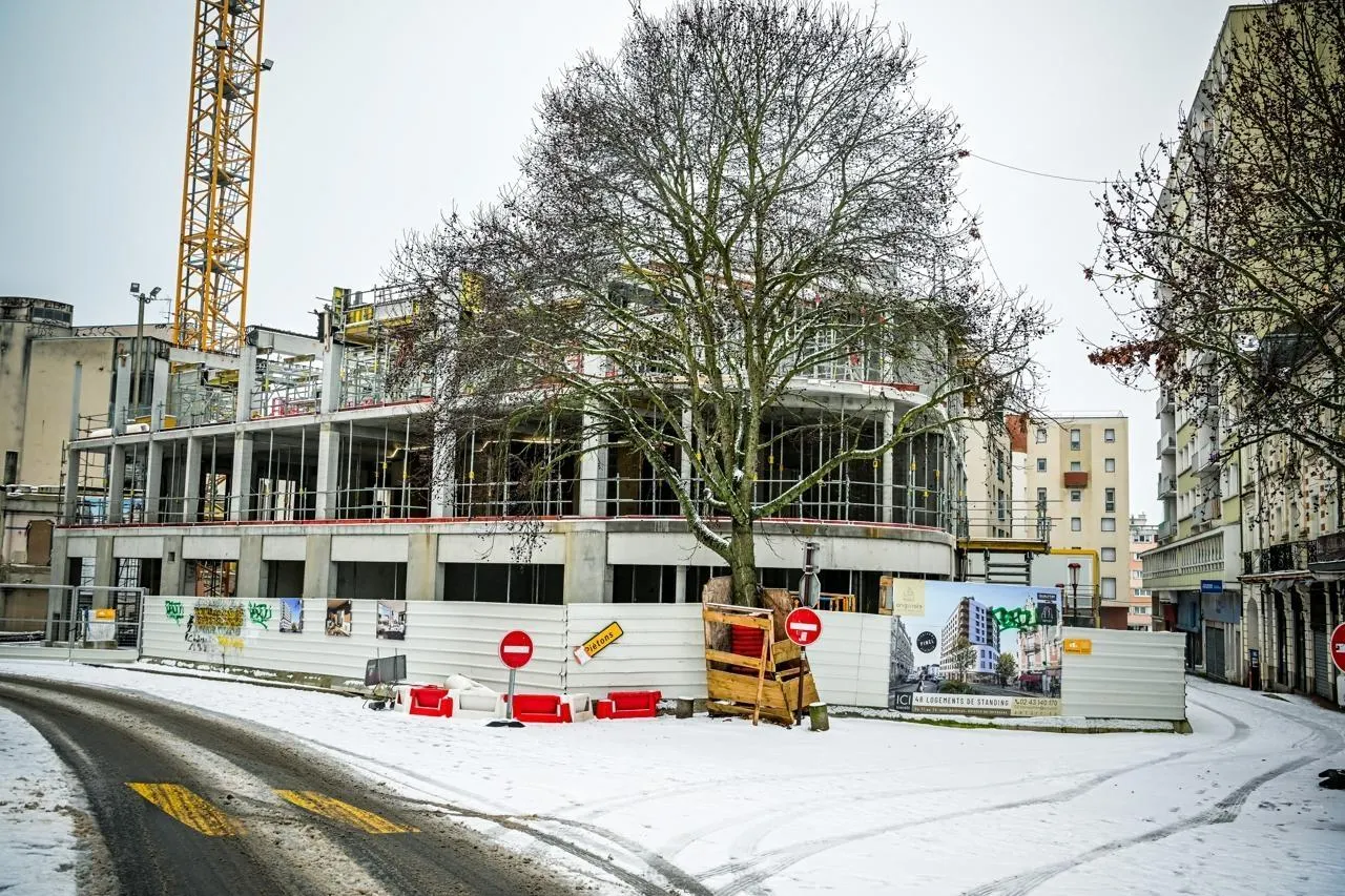 Les travaux d’aménagement urbain et de voirie ont été mis en suspens depuis le début de la semaine en raison des intempéries neigeuses. © Photo Le Maine Libre – Yvon LOUÉ