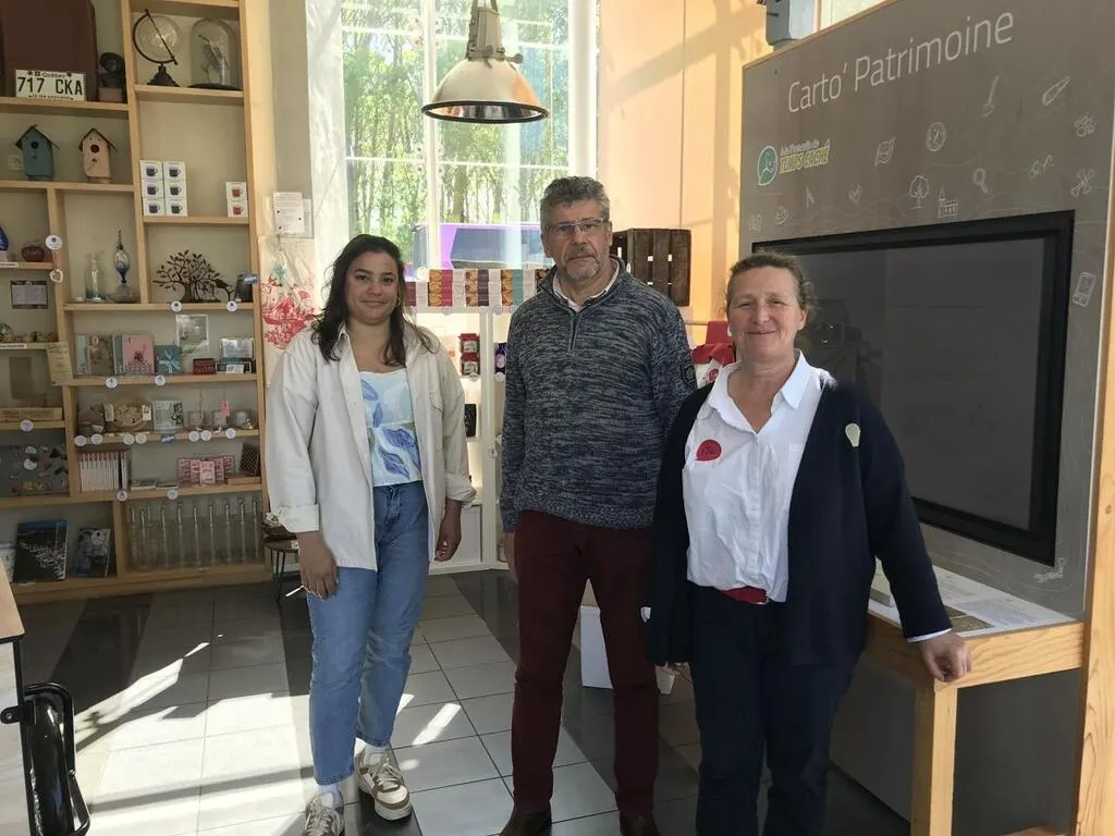 Philippe Biaud et Véronique Richard, président et directrice de l’office de tourisme, avec Aline Gaudy, chargée de communication et de promotion à l’office de tourisme de La Flèche, le vendredi 19 avril 2024. © Le Maine Libre
