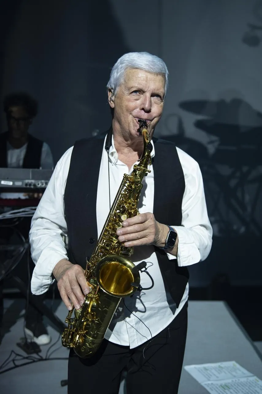 Patrick Bourgoin, ancien saxophoniste de Daniel Balavoine a rejoint la troupe de la tournée. © Elsa Goudenege
