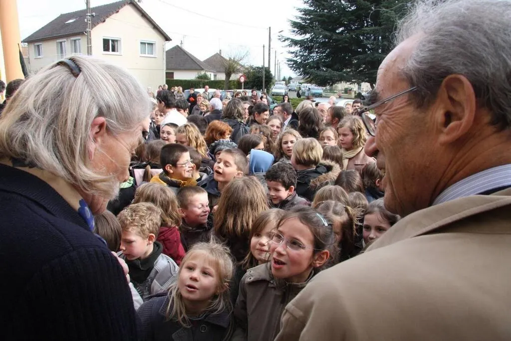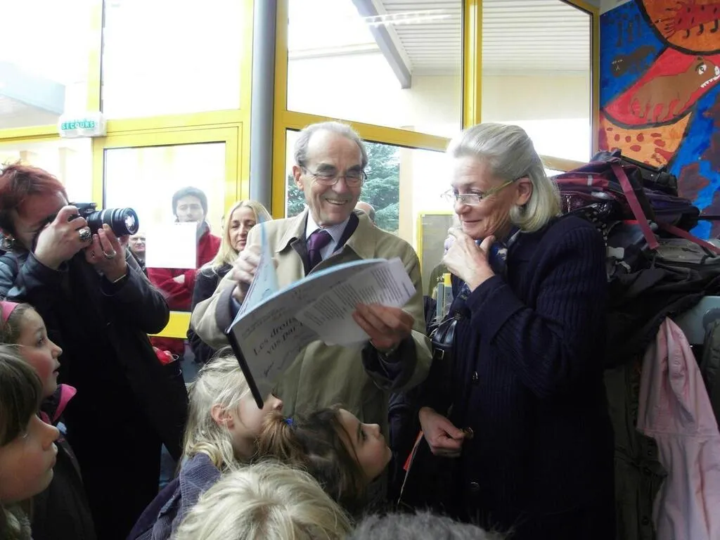 Le couple Badinter était venu inaugurer l’école Élisabeth et Robert Badinter à Ballon-Saint-Mars. © archives Le Maine Libre