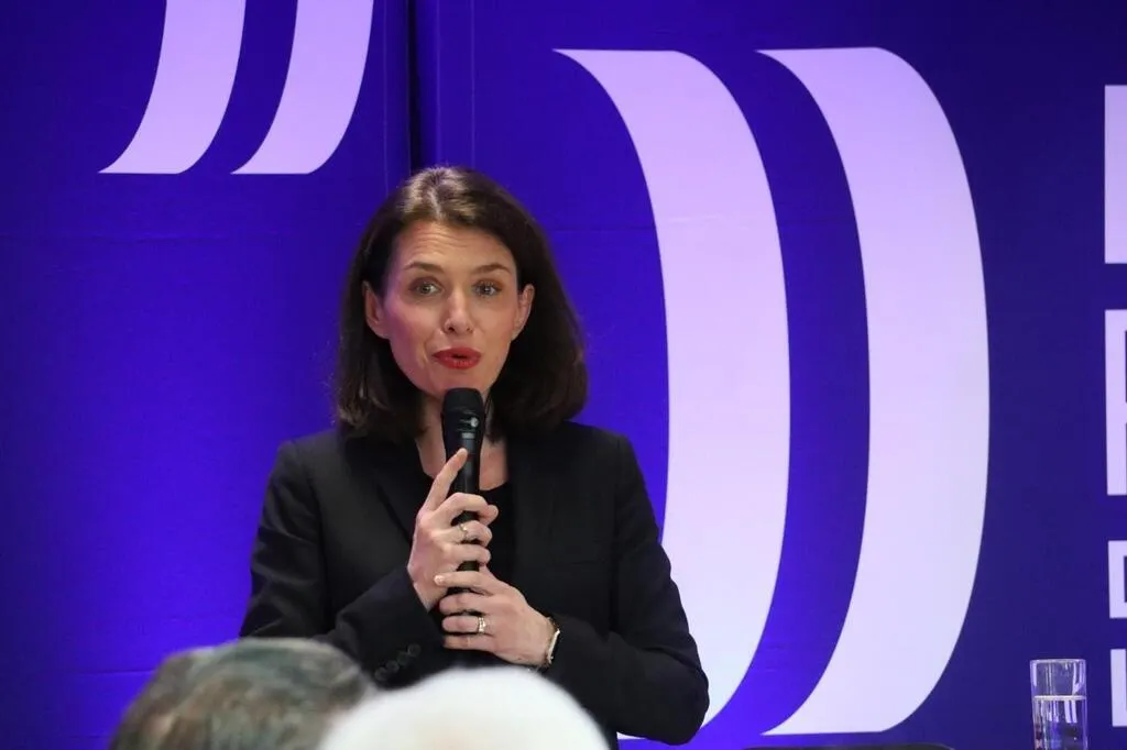 Christelle Morançais devant un parterre d’élus de LBN communauté et quelques habitants du territoire, jeudi 11 avril 2024. © Ouest-France