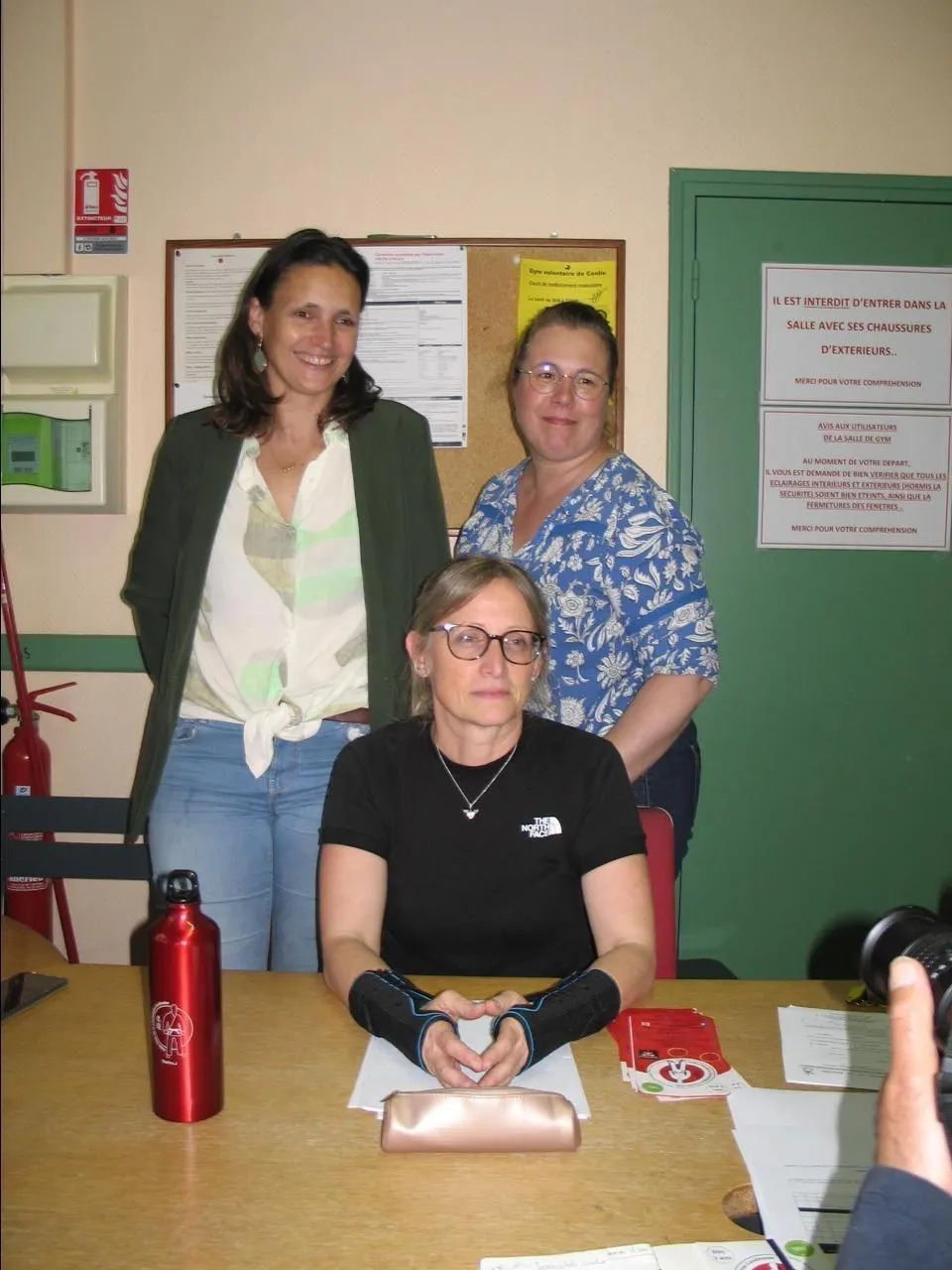 Karine Jouanneau, la présidente (assise) accompagnée de deux membres du bureau, solidaires de cette montée au créneau. © Le Maine Libre