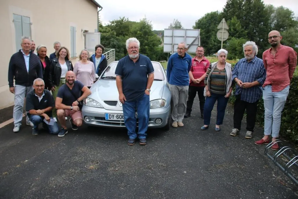 Devant le premier lot de tombola, Gérard Lafosse, au centre, accompagné des membres du bureau et bénévoles. © Le Maine Libre