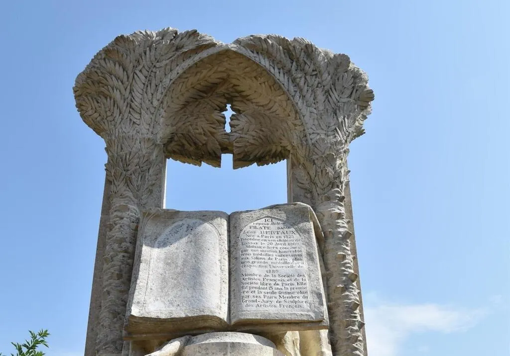 Pendant presque un siècle, elle repose au cimetière du village sous une stèle monumentale de trois mètres de hauteur, dans l’anonymat :  Jusqu’à ce que deux habitantes du village découvrent, par hasard, un ouvrage d’Édouard Lepage, Une conquête féministe : Mme Léon Bertaux. Comme ça se faisait à l’époque, elle signait toutes ses Å“uvres du nom de son mari.Â